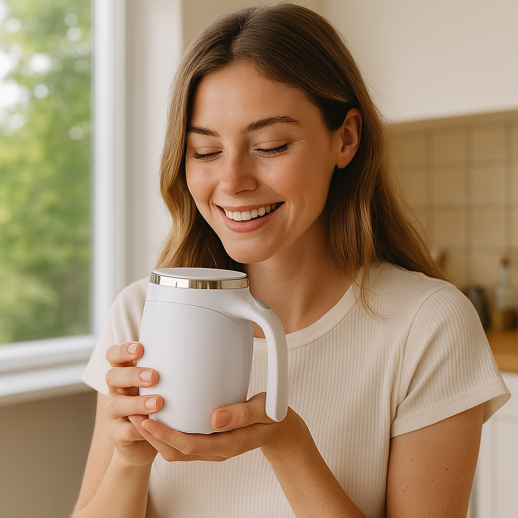 Gefertigt aus hochwertigem Edelstahl und ausgestattet mit einer wiederaufladbaren Batterie, vereint der SmartBecher™ modernes Design, Komfort und Langlebigkeit. Ob zu Hause, im Büro oder unterwegs – genießen Sie Ihren Kaffee, Tee oder Kakao immer frisch gerührt und ideal temperiert.
